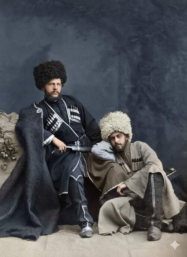 р Беренштам и архитектор Александр Шимкевич в кавказских нарядах. Тифлис, 1890-е гг.