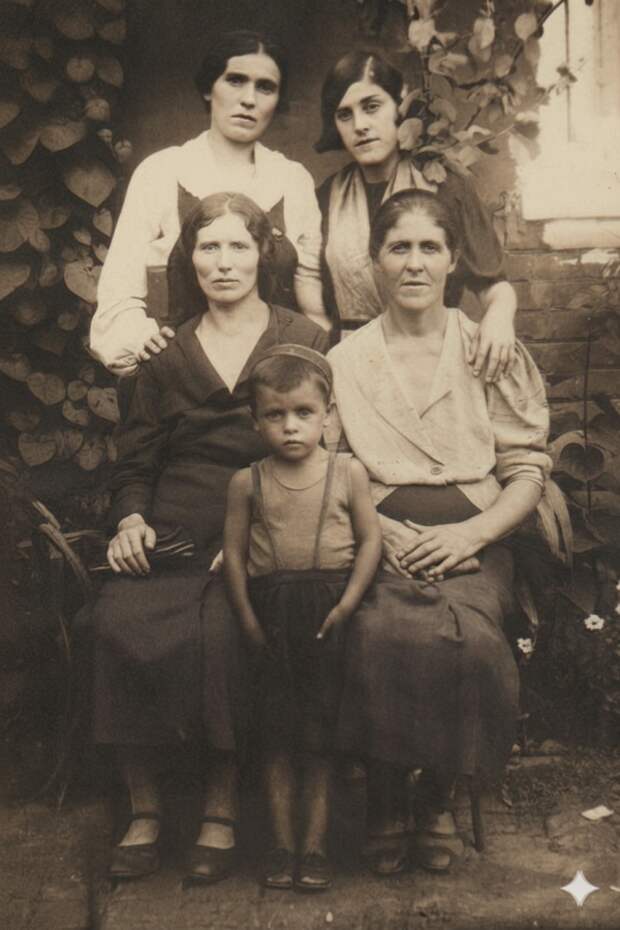 Жители адыгейских аулов - четыре женщины и мальчик