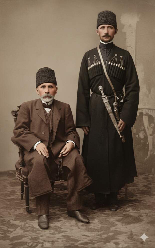 Черкесы, принадлежащие к племени абадзехов. Мохамед Лах и Иса Нури Анчок