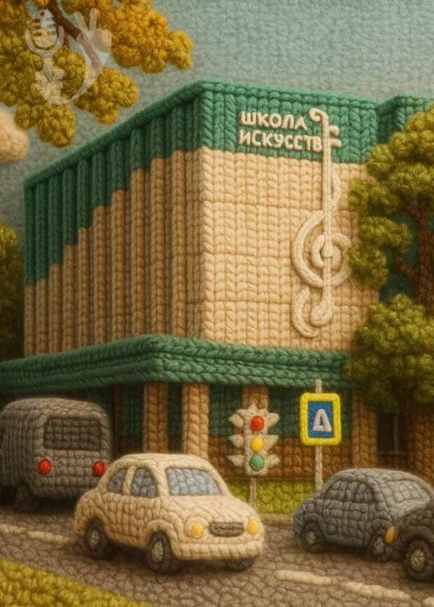 На «цифровых коврах» ожили фасады зданий, будто связанные ажурными узорами, а деревья в городских скверах обрели вид пушистой пряжи. Каждое изображение наполнено теплом, домашним уютом и вниманием к деталям, что создает неожиданный и трогательный образ современного города.