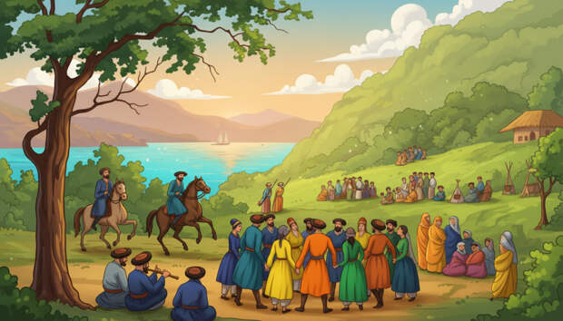 Сакральный танец Удж (Хъурей): Центральная площадь была не просто географическим центром, а ритуальным сердцем общины. Здесь исполняли священный круговой танец Удж, который, по поверьям, содержал в себе магическую силу. Танцуя по кругу, люди символически повторяли путь солнца, заряжаясь его энергией и обеспечивая мировой порядок.