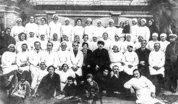 Коллектив Адыгейской областной больницы с Шахан-Гиреем Хакурате. Фотография сделана в 1927 году. (Краснодар)