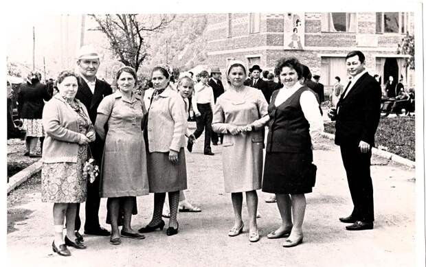 Кудриков П.Я., Шафиров В. Н., Чупахина Райса, Крутова Нина, фото 1973г. снято возле Дома быта п.Каменномостский