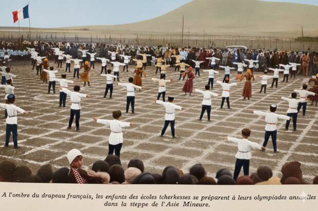 Изображение 2: «Дети из черкесских школ готовятся к ежегодным Олимпийским играм в степях Малой Азии (вероятно, на территории современной Сирии)».